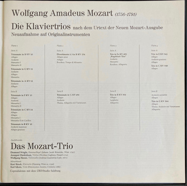 Recorded: Grosser Saal des Mozarteums, Salzburg. Neuaufnahme auf Originalinstrumenten. -Stereo-