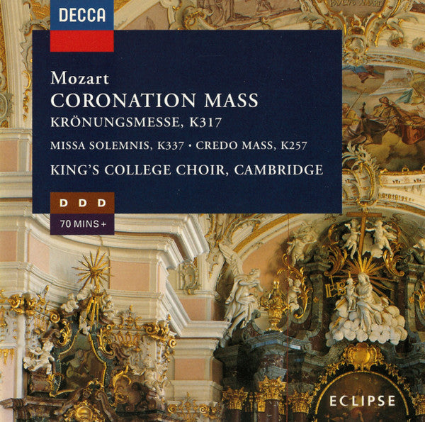 . Coronation Mass, K.317 26:10. Missa Solemnis, K.337 23:05. Missa In C, K. 257 (Credo Mass) 25:57