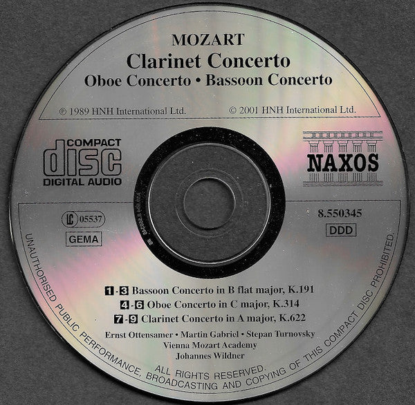 . Concerto For Bassoon And Orchestra In B-flat Major, K. 191 17:26. Concerto For Oboe And Orchestra In C Major, K. 314 20:48. Concerto For Clarinet And Orchestra In A Major, K. 622 29:38