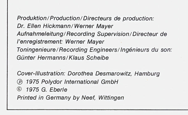 Phonographic Copyright (p) Polydor International GmbHPrinted By NeefCopyright (c) Gottfried EberleRecorded At Wiener MusikvereinLacquer Cut At Phonodisc GmbHData provided by Discogs