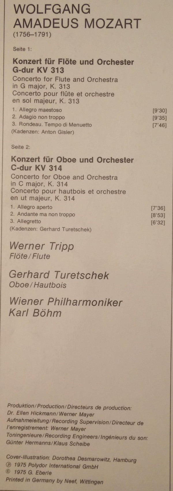 Wolfgang Amadeus Mozart - Karl Böhm / Wiener Philharmoniker / Gerhard Turetschek / Werner Tripp