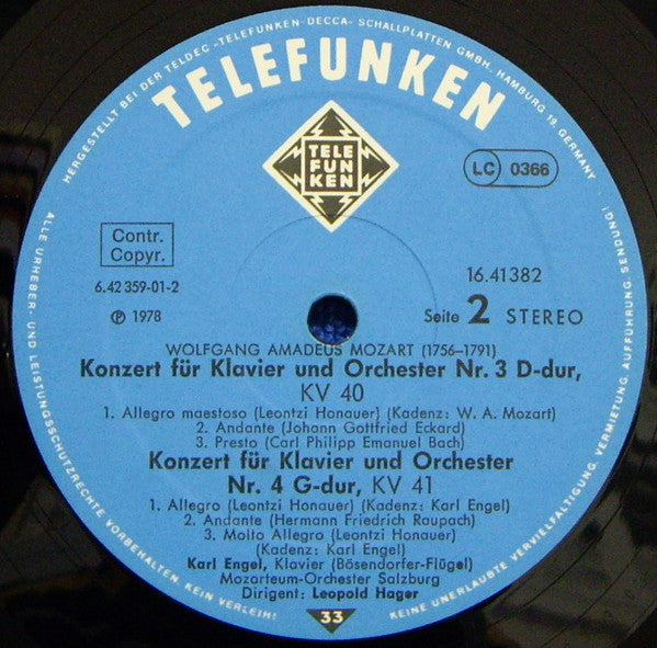 . Konzert Für Klavier Und Orchester Nr. 9 Es-dur, KV 271 . Konzert Für Klavier Und Orchester Nr. 3 D-dur, KV 40 Nach Sonatensätzen Von Honauer, Echard Und C.Ph. E. Bach . Konzert Für Klavier Und Orchester Nr. 4 G-dur, KV 41 Nach Sonatensätzen von Honauer und Raupach