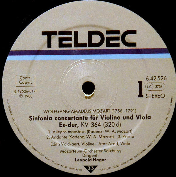 Wolfgang Amadeus Mozart - Rainer Küchl, Erich Binder, Edith Volckaert, Atar Arad, Das Mozarteum Orchester Salzburg, Leopold Hager
