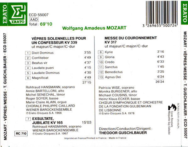 . Vêpres Solennelles Pour Un Confesseur KV 339 Ut Majeur/C Major/C-dur 7. Exsultate, Jubilate KV 165 15:03. Messe Du Couronnement KV 317 Ut Majeur/C Major/C-dur