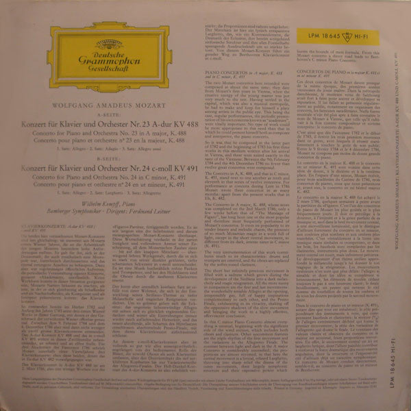 Wolfgang Amadeus Mozart - Wilhelm Kempff, Bamberger Symphoniker, Ferdinand Leitner