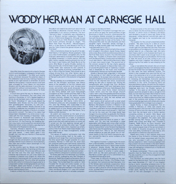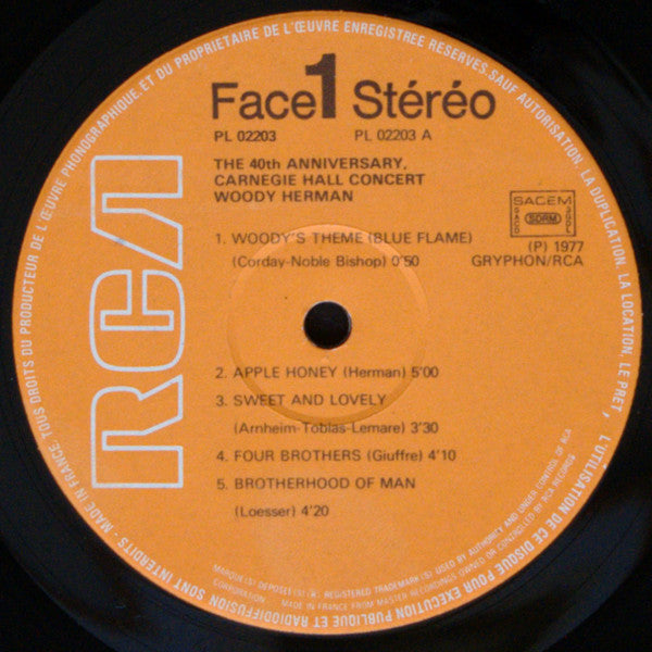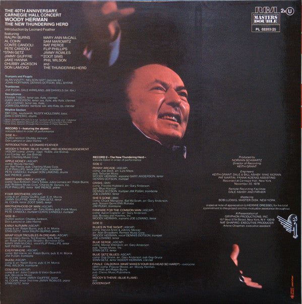 A1. Woody's Theme (Blue Flame) And Acknowledgements 0:50 A2. Apple Honey 5:00 A3. Sweet And Lovely 3:30 A4. Four Brothers 4:10 A5. Brotherhood Of Man 4:20 B1. Early Autumn 3:40 B2. Wrap Your Troubles In Dreams 2:15 B3. Everywhere 3:00 B4. Bijou 3:17 B5. Cousins 6:45 C1. Penny Arcade 7:50 C2. Crisis 5:50 C3. She's Gone 5:45 C4. Fanfare For The Common Man 7:10 D1. Blues In The Night 10:25 D2. Blue Serge 4:10 D3. Blue Getz Blues 3:30 D4. Finale: Caldonia (What Makes Your Big Head So Hard?) 10:15