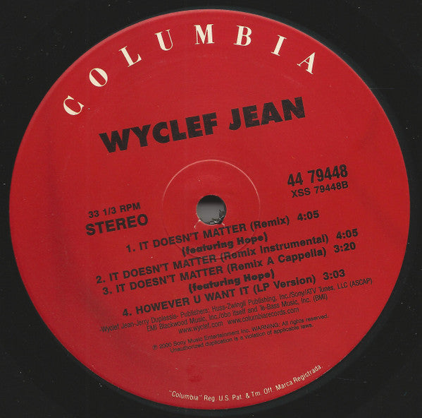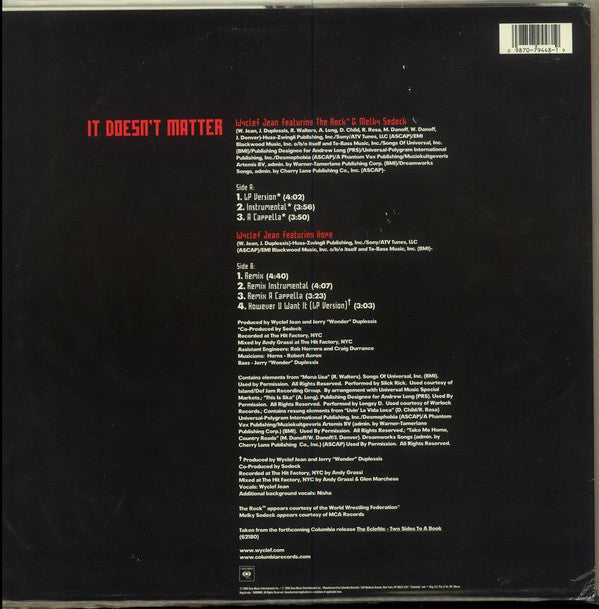 Wyclef Jean Featuring The Rock & Melky Sedeck - It Doesn't Matter (12")