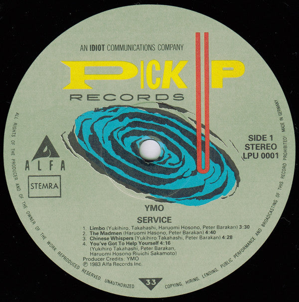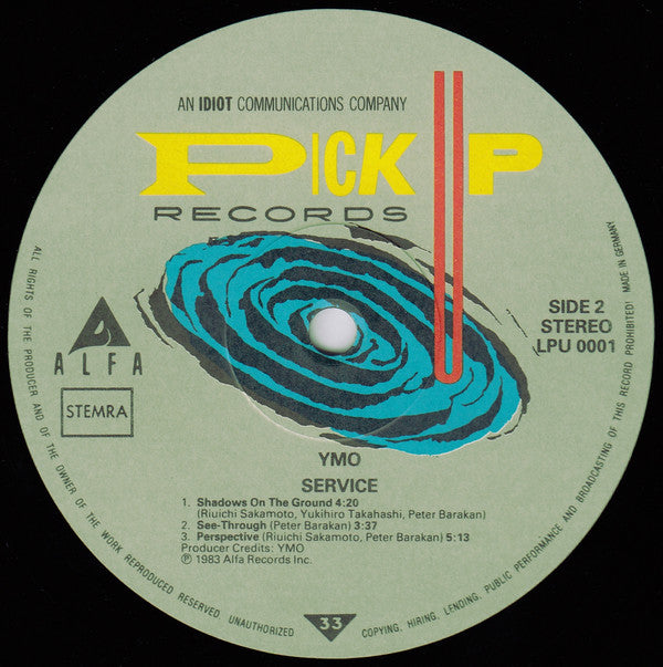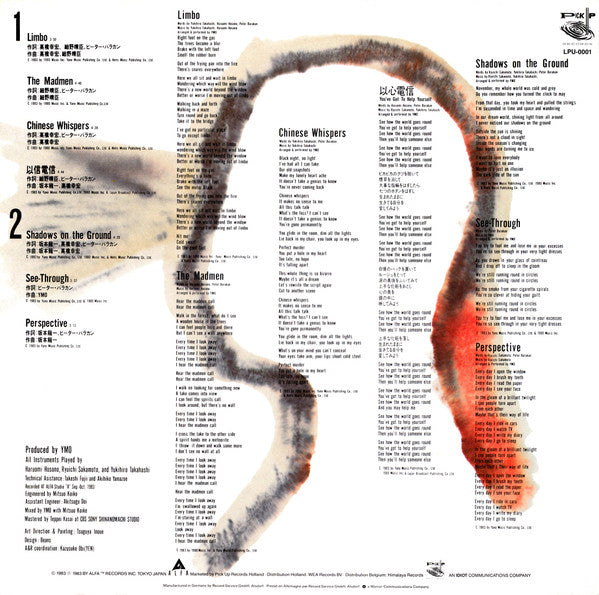 Record Company Idiot Communications Record Company Warner Communications Manufactured By Record Service Alsdorf Marketed By Pick Up Records Distributed By WEA Records B.V. Distributed By Himalaya Phonographic Copyright (p) Alfa Records, Inc Copyright (c) Alfa Records, Inc Published By 1980 Music Inc. Published By Yano Music Publishing Co., Ltd. Published By Hints Music Publishing Co., Ltd. Published By Japan Broadcasting Publishing Co., Ltd. Recorded At ALFA Studio A Mastered At CBS/Sony Shinanomachi Studio Pressed By Record Service Alsdorf
