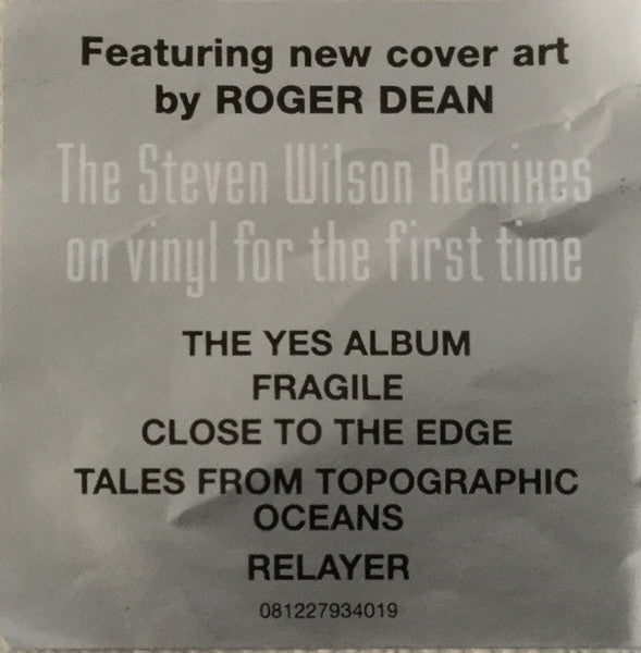 The outer box features artwork created specifically for the set by Roger Dean, Fragile, Close To The Edge and Tales From Topographic Oceans have new cover art. Relayer and Yes Album cover art as originals.