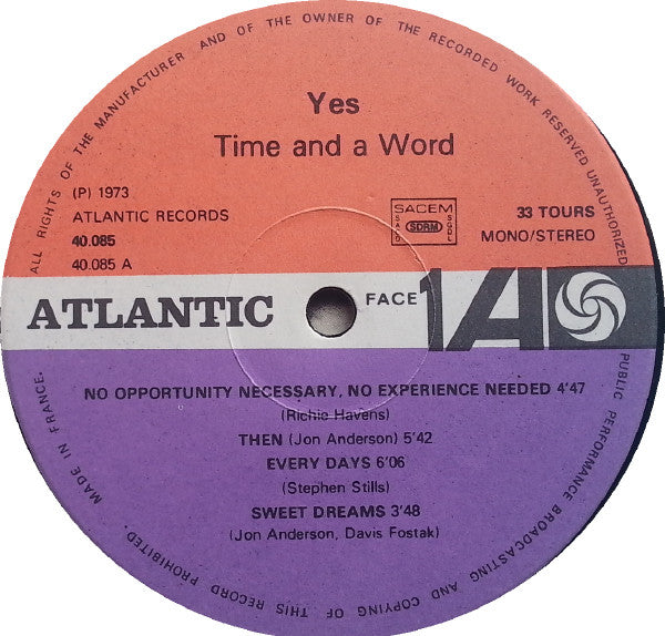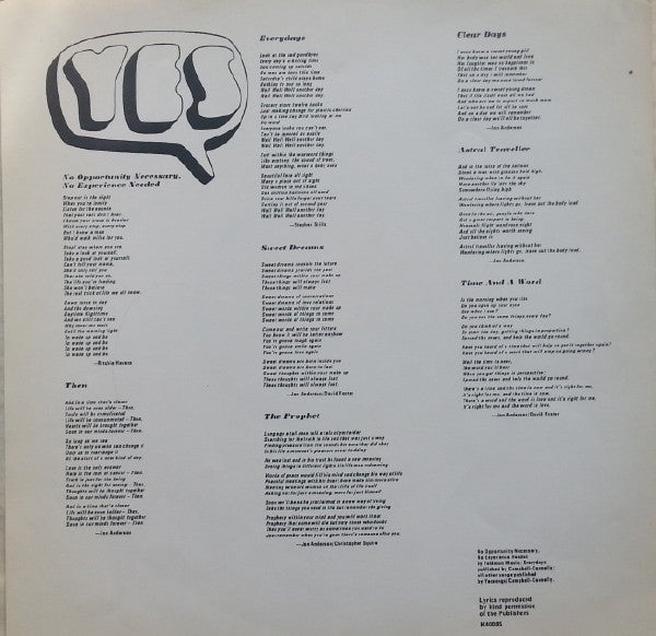 A1. No Opportunity Necessary, No Experience Needed 4:47 A2. Then 5:42 A3. Everydays 6:06 A4. Sweet Dreams 3:48 B1. The Prophet 6:32 B2. Clear Days 2:04 B3. Astral Traveller 5:50 B4. Time And A Word 4:31