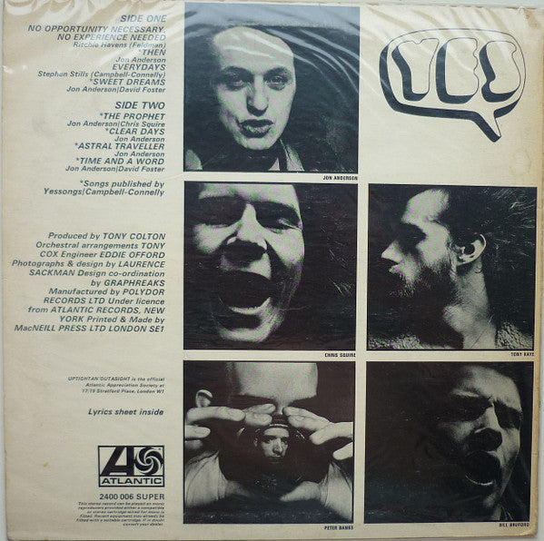 Pressed By Phonodisc Ltd. Manufactured By Polydor Records Ltd. Published By B. Feldman & Co. Published By Yessongs Published By Campbell Connelly Published By Rondor Music Licensed From Atlantic Printed By MacNeill Press Ltd. Made By MacNeill Press Ltd.