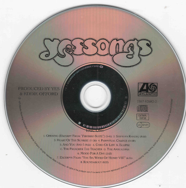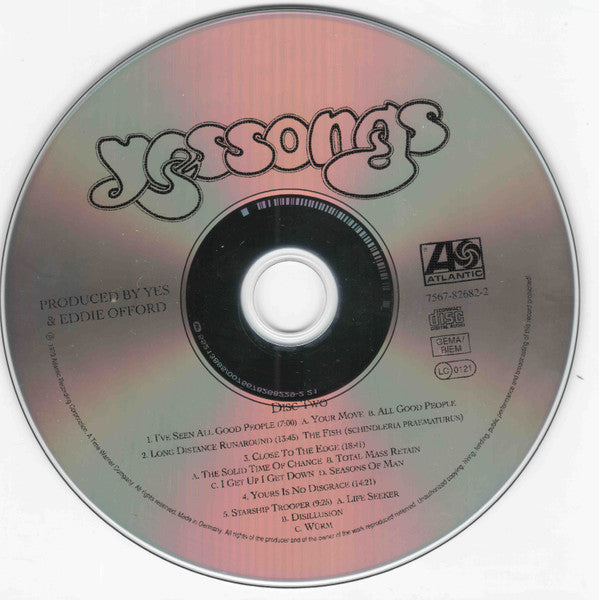 Record Company Atlantic Recording Corporation Record Company Time Warner Phonographic Copyright (p) Atlantic Recording Corporation Copyright (c) Atlantic Recording Corporation Made By Warner Music Manufacturing Europe Copyright (c) Roger Dean (4) Copyright (c) Martyn Dean Published By Boosey & Hawkes Published By Yessongs Published By Cotillion Published By Almo Mastered At Atlantic Studios Remastered At Oceanview Digital Mastering Glass Mastered At Arvato Glass Mastered At Arvato