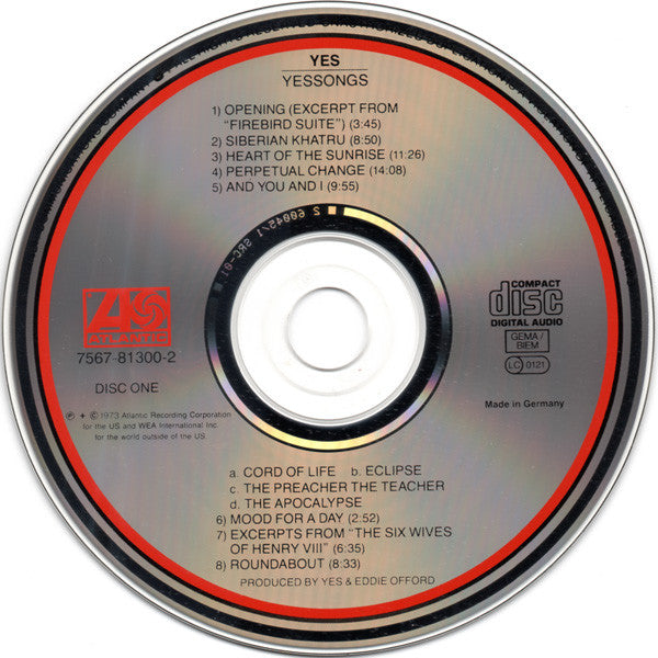 1.1. Opening (Excerpt From "Firebird Suite") 3:451.2. Siberian Khatru 8:501.3. Heart Of The Sunrise 11:261.4. Perpetual Change 14:08. And You And I 9:551.6. Mood For A Day 2:521.7. Excerpts From "The Six Wives Of Henry VIII" 6:351.8. Roundabout 8:332.1. Your Move / All Good People 7:002.2. Long Distance Runaround / The Fish 13:45. Close To The Edge 18:412.4. Yours Is No Disgrace 14:21. Starship Trooper 9:25