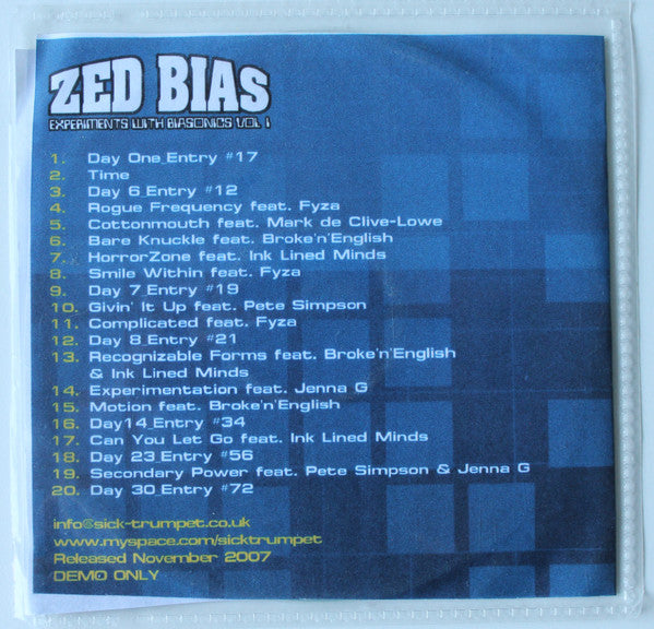 1. Day One Entry #17 0:342. Time 6:273. Day 6 Entry #12 0:224. Rogue Frequency 5:205. Cottonmouth 5:426. Bare Knuckle 2:387. Horror Zone 3:468. Smile Within 5:089. Day 7 Entry #19 0:2110. Givin' It Up 4:5311. Complicated 4:1712. Day 8 Entry #21 0:1113. Recognizable Forms 3:2214. Experimentation 3:4315. Motion 5:4116. Day 14 Entry #34 0:1717. Can You Go 2:5918. Day 23 Entry #56 0:2019. Secondary Power 3:4420. Day 30 Entry #72 0:25