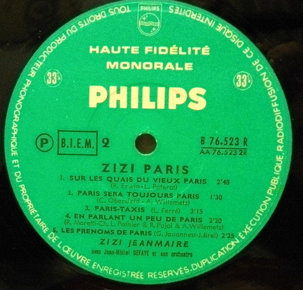A1. Mon Paris 2:43 A2. Sous Les Ponts De Paris 2:05 A3. A Paris Dans Chaque Faubourg 3:10 A4. Paris Je T'aime... D'amour 2:28 A5. Paris-Canaille 3:00 B1. Sur Les Quais Du Vieux Paris 2:48 B2. Paris Sera Toujours Paris 1:30 B3. Paris-Taxi 3:15 B4. En Parlant Un Peu De Paris 2:20 B5. Les Prenoms De Paris 2:25